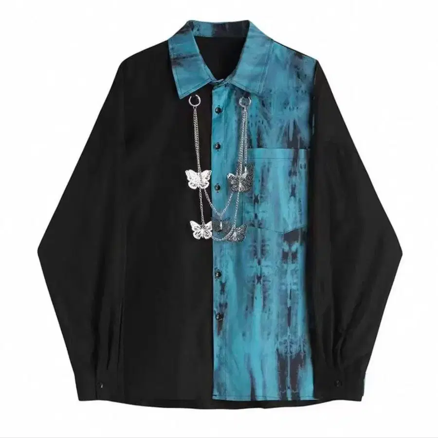 블랙 x 파랑 그라데이션 나비 장식 캐주얼 긴팔 셔츠