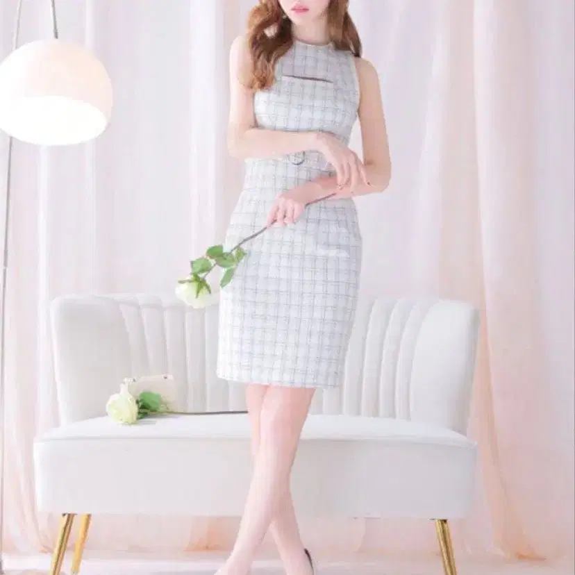 DEA.로브 드 플뢰르 트위드 체크 패턴 타이트 미니 드레스 S 화이트