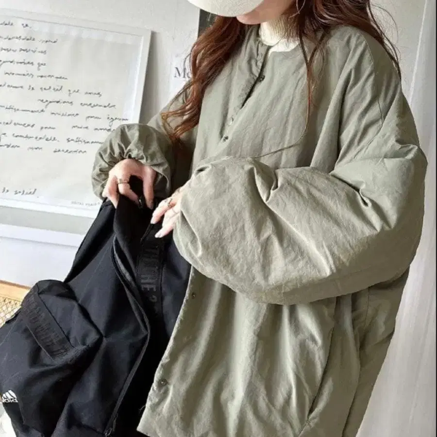 [ JAVA 자바 콜라보 ] 바스락 소재 사이드 지퍼 노카라 블루종
