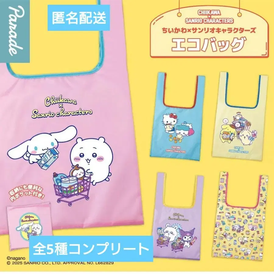치이카와 산리오 캐릭터즈 에코백 가챠가챠 전 5종 컴플리트
