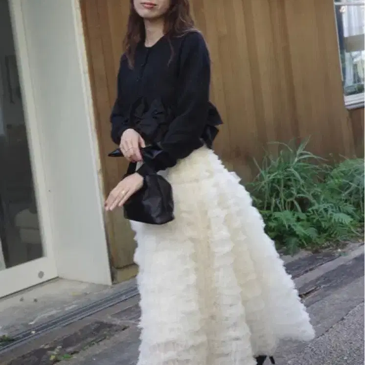 Frene 헴 리본 디자인 숏 가디건 + 휘핑 튤 캉캉 스커트