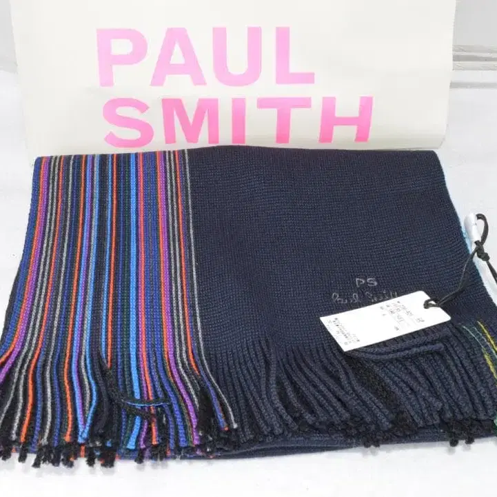 새상품 Paul Smith 멀티 스트라이프 하프 스트라이프 머플러 네이비