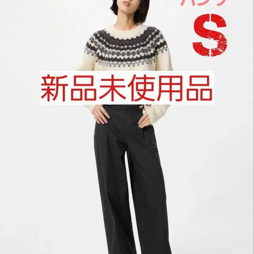 미사용 새상품 UNIQLO 턱 와이드 팬츠 블랙 (코튼) S