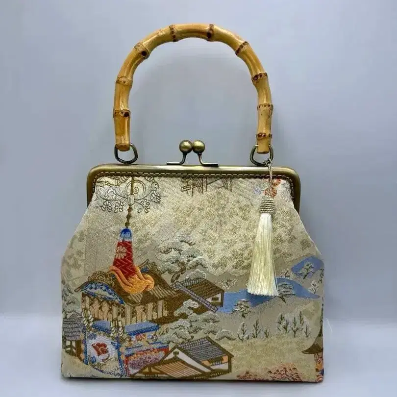 핸드메이드 니시진 비단 금실 라메실 핸드 백 대나무 손잡이 #536