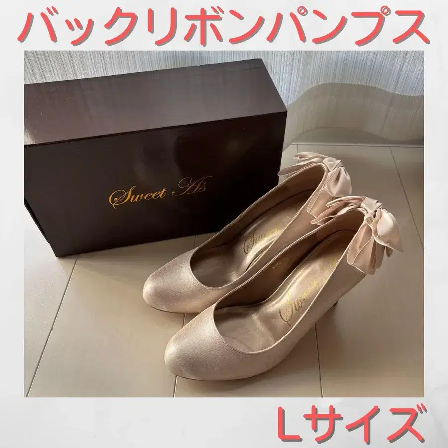 백리본 펌프스 하이힐 결혼식 파티 베이지 L 사이즈