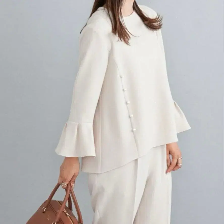 [쉽스] 손세탁 가능 펄 모티브 디자인 플레어 슬리브 블라우스