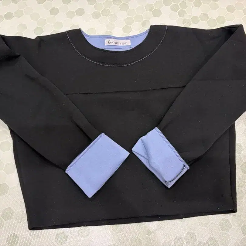 [CEN.] 센 본딩 바이컬러 맨투맨 블랙 파랑 작은 키