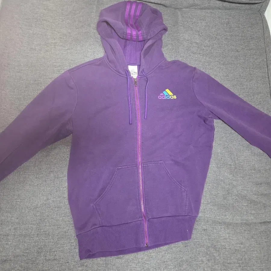 adidas 보라색 풀 집업 후드티 L 사이즈