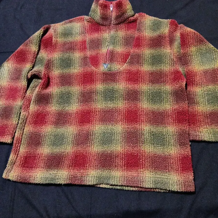 자동 번역되었어요. 원문보기빨간색과 녹색 체크 무늬의 플리스 자켓, 하이넥 디자인으로 캐주얼한 스타일에 최적.