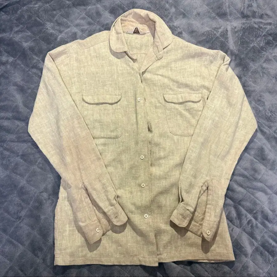 60s 캠퍼스 베이지 긴팔 셔츠 vintage 린넨 셔츠
