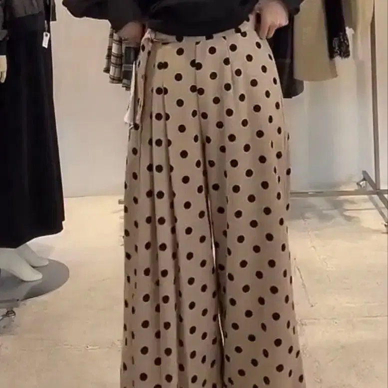 GALENA 도트 플리츠 와이드 팬츠 38 사이즈