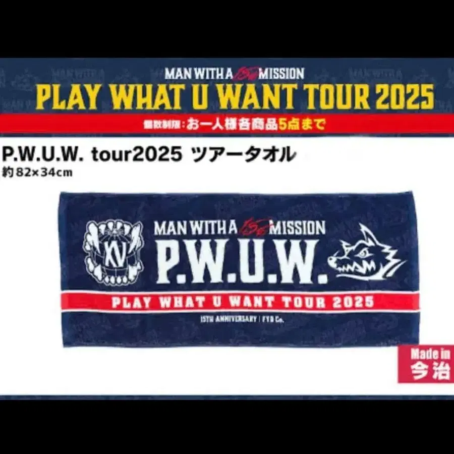 MAN WITH A MISSION P.W.U.W. 투어 2025 타월