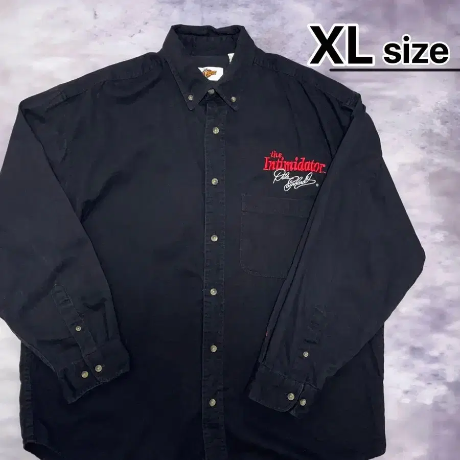USA 구제 의류 코튼 셔츠 XL 블랙 검정 자수 로고 긴팔 NASCAR