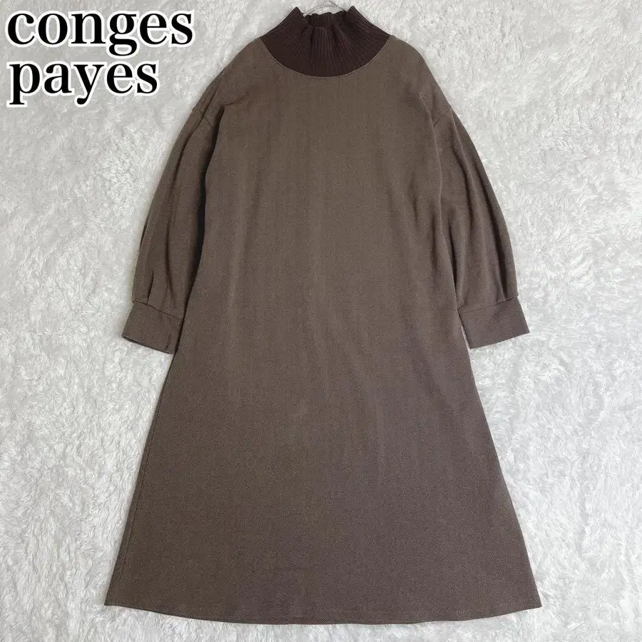 conges payes 하이넥 헤링본 리브 니트 원피스