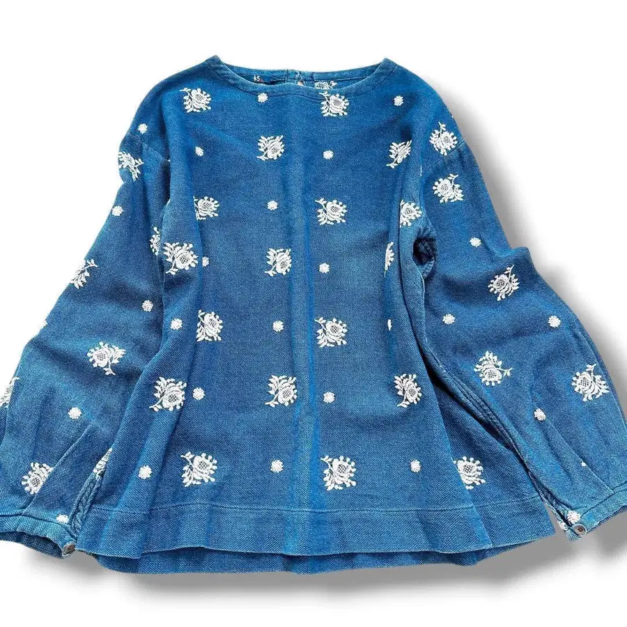 45RPM 카디 자수 네이비 나염 인디고 티셔츠 긴팔 튜닉 올 패턴