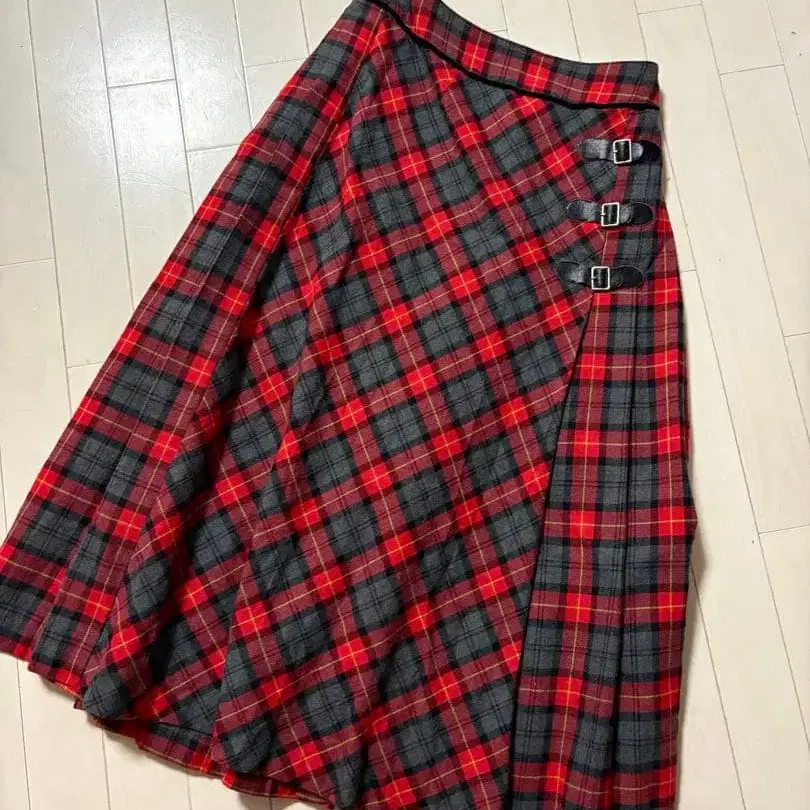 로이스크레용 롱 스커트 플리츠 스커트 체크 빨간색
