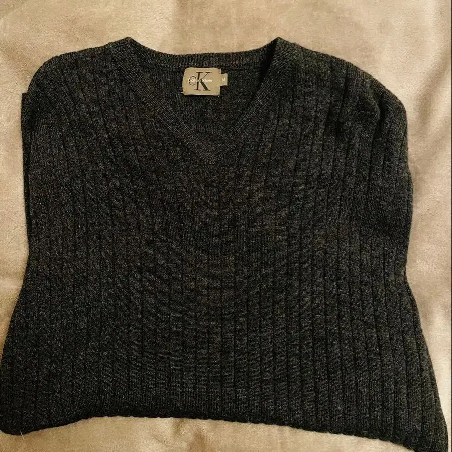 캘빈클라인 모 100% 다크 그레이 V넥 스웨터