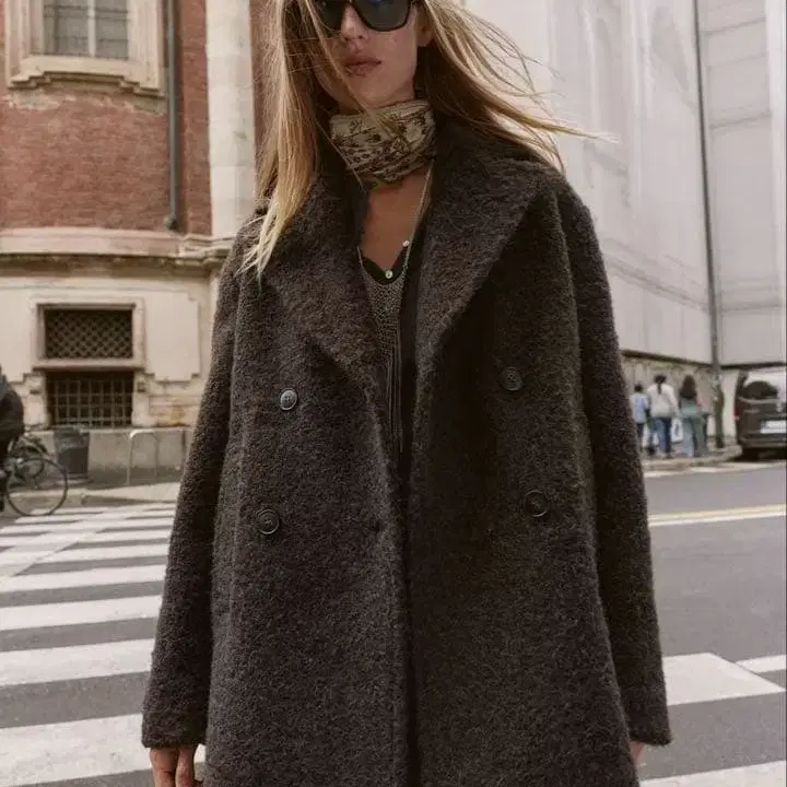 ZARA 부클 더블 브레스트 미디 기장 코트 L