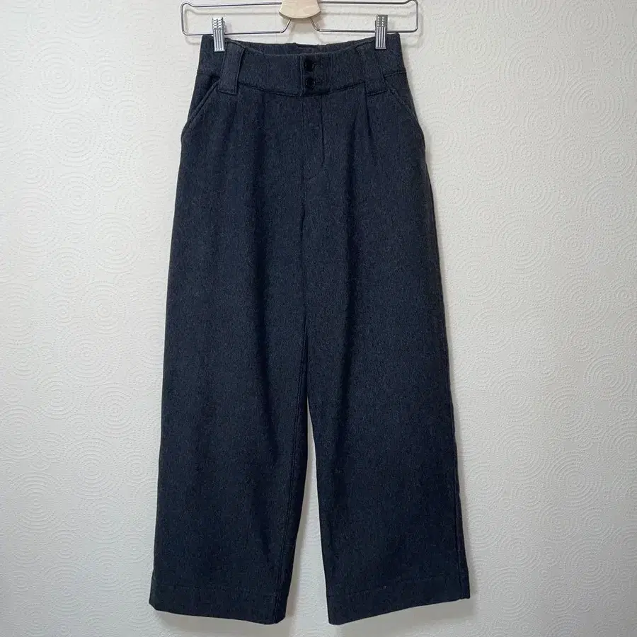 자동 번역되었어요. 원문보기다크 그레이 색상의 버튼 와이드 팬츠, 스타일리시하고 쾌적한 착용감.