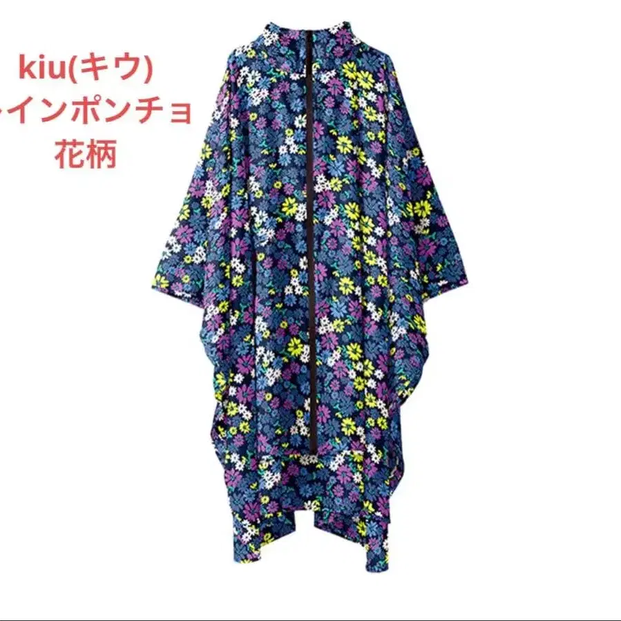 [새상품급] Kiu 레인 판초 수납 케이스 포함 꽃무늬 보헤미안 블루