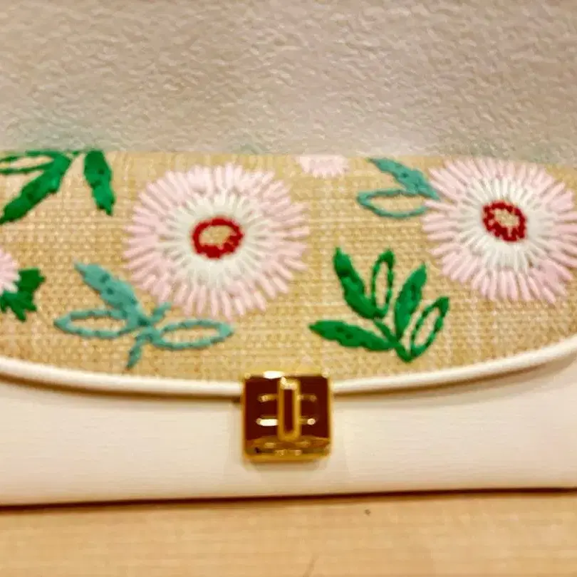 자수 장식 화이트 숄더백