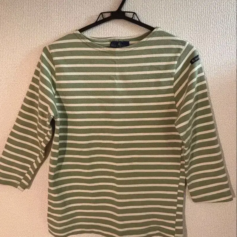 Le minor 그린과 화이트 스트라이프 5부 소매 티셔츠