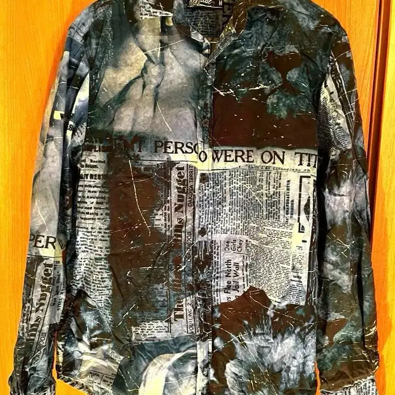 Desigual 데시구알 올 패턴 프린트 긴팔 셔츠 M 뉴스 페이퍼 패턴