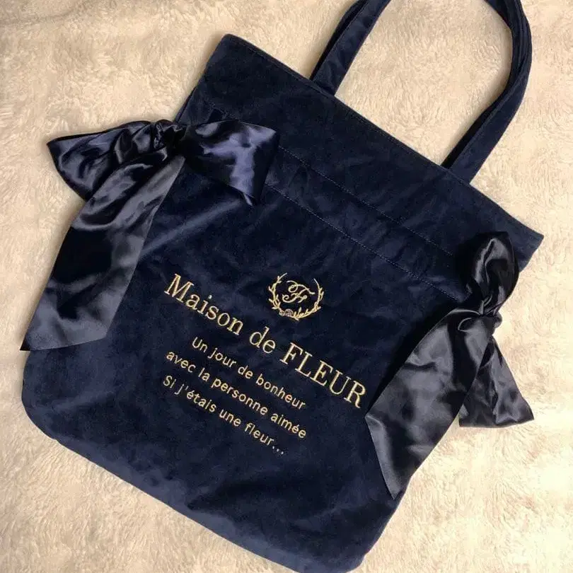 [ Maison de FLEUR ] 네이비 토트백 벨벳 리본
