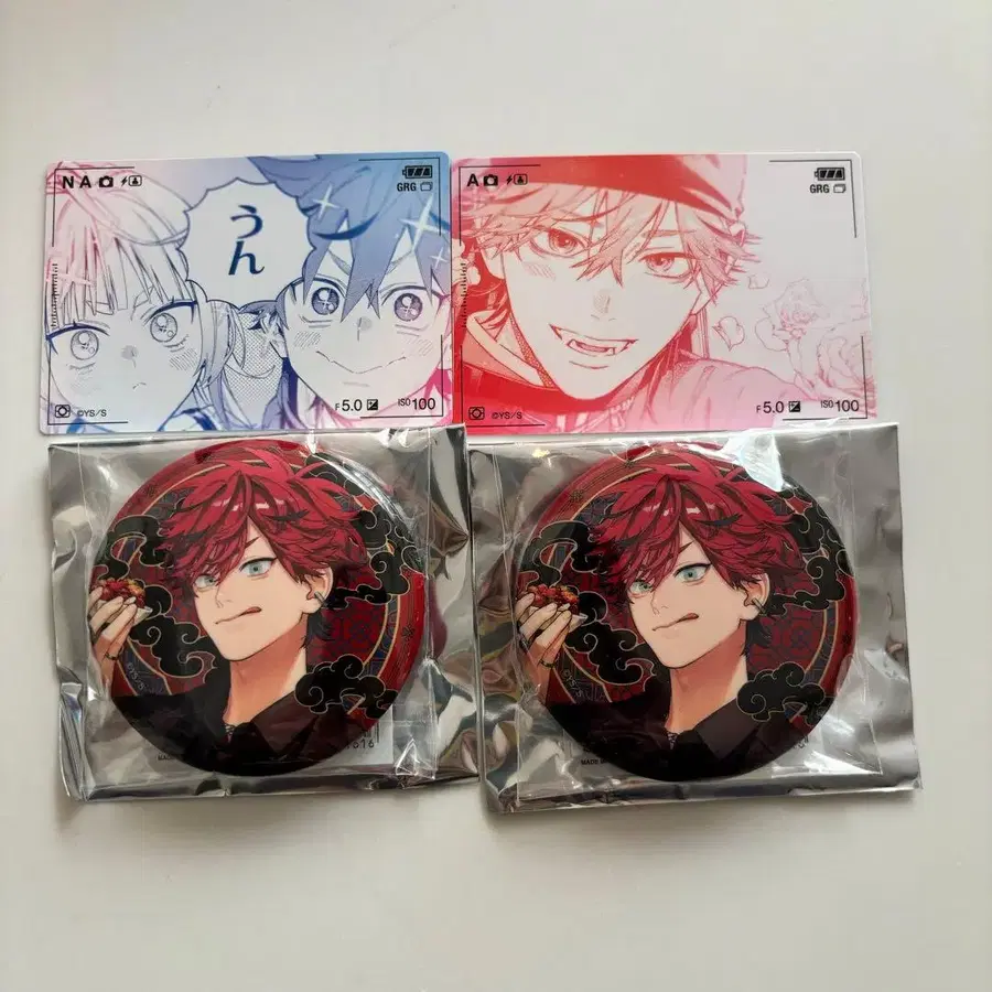극락가 아루마 체인 달린 캔뱃지 서로 바라보는 근접 접사 트레이딩 카드