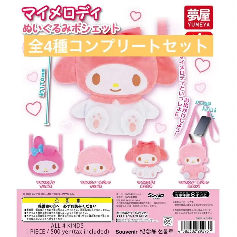 마이멜로디 봉제 인형 미니백 전 4종 컴플리트 세트