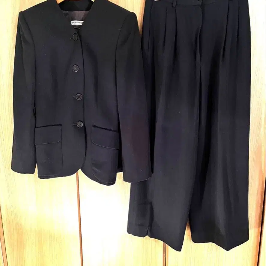 엠포리오 아르마니 블랙 셋업 노카라 자켓 와이드 팬츠 42