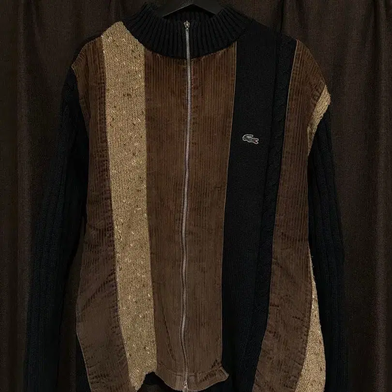 [ 상품 설명 ] LACOSTE (라코스테)의 집업 니트입니다. 이종 소재를 조합한 디자인으로, 코듀로이 x 니트 절개가 특징적인 아이템입니다. 차분한 브라운 x 블랙 계열의 배색으로, 성숙하고 고급스러운 인상을 줍니다. 프론트는 더블 지퍼 사양이므로, 여는 방식에 따라 분위기를 바꿀 수 있습니다. 가슴 부분에는 스테디셀러인 악어 로고 자수가 있습니다. 가을/겨울부터 봄까지 활약하는 아이템으로, 이너로도 아우터처럼 착용 가능합니다. [ 브랜드 ] LACOSTE (라코스테) [ 색상 ] 브라운 / 블랙 계열 [ 디자인 ] 집업, 이종 소재 절개 [ 상태 ] 눈에 띄는 얼룩이나 데미지 없이 전반적으로 깨끗한 상태입니다. ※ 중고품이므로, 약간의 사용감은 양해 부탁드립니다. 즉시 구매 OK입니다. 질문 등 있으시면 부담 없이 댓글 주세요.