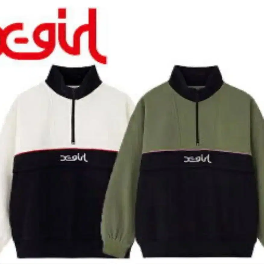 [ X-girl ] BICOLOR ANORAK SWEAT TOP 카키 S