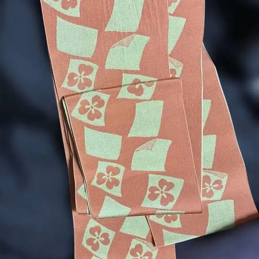 전통적인 빨간색과 그린 꽃무늬 반 오비, 새상품, 새상품급