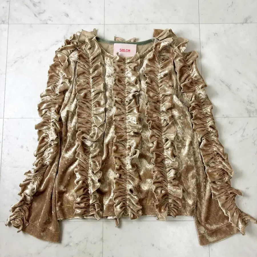 SIIILON 시이론 벨로아 프릴 티셔츠 프리 베이지 일본제