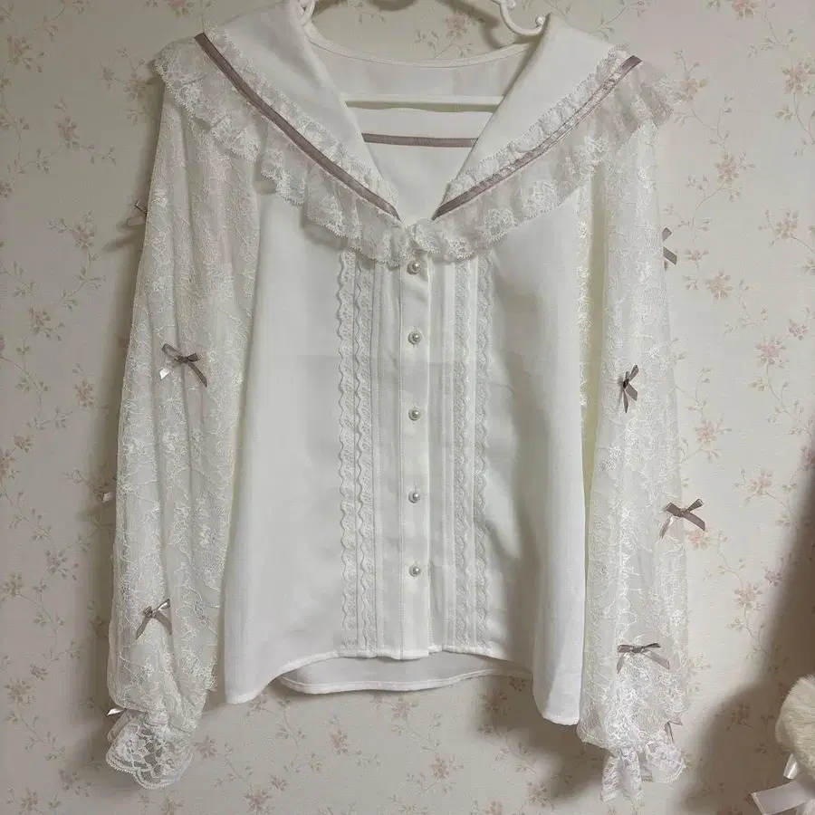 MARS 마즈 소매 레이스 쁘띠 리본 포함 세일러 블라우스