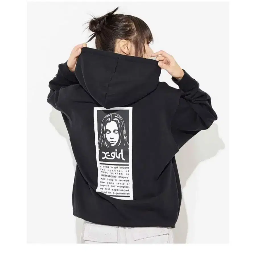 X-girl 페이스 로고 프린트 블랙 후드티