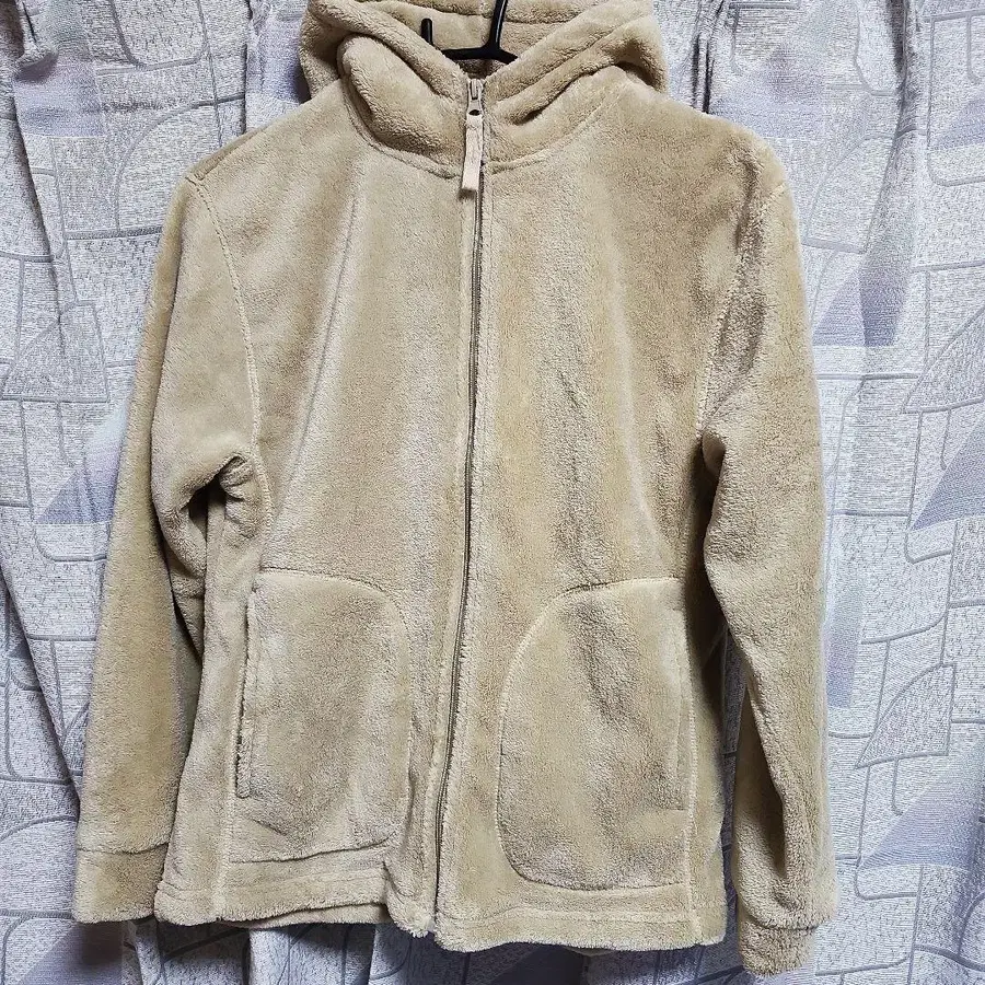 베이지 플리스 자켓 후드 부착