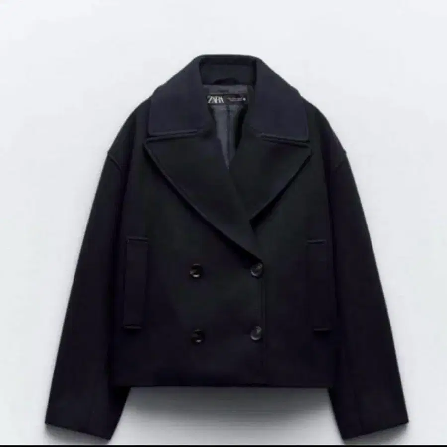 ZARA 소프트 크롭 더블 브레스트 코트 피코트 네이비