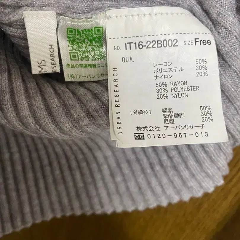 URBAN RESEARCH 리브 하이넥 스웨터 그레이 프리 사이즈