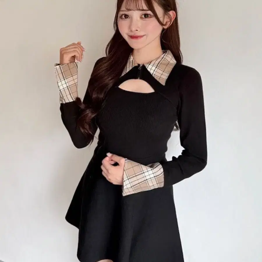 NOMAE 체크 컬러 미니 니트 원피스 블랙