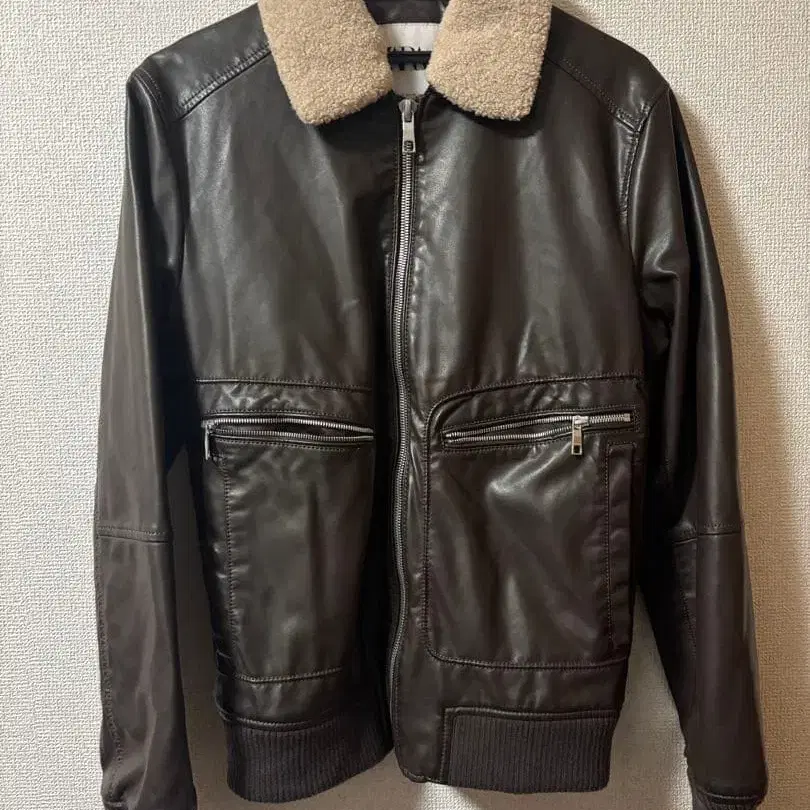ZARA 다크 브라운 가죽 자켓 퍼 옷깃