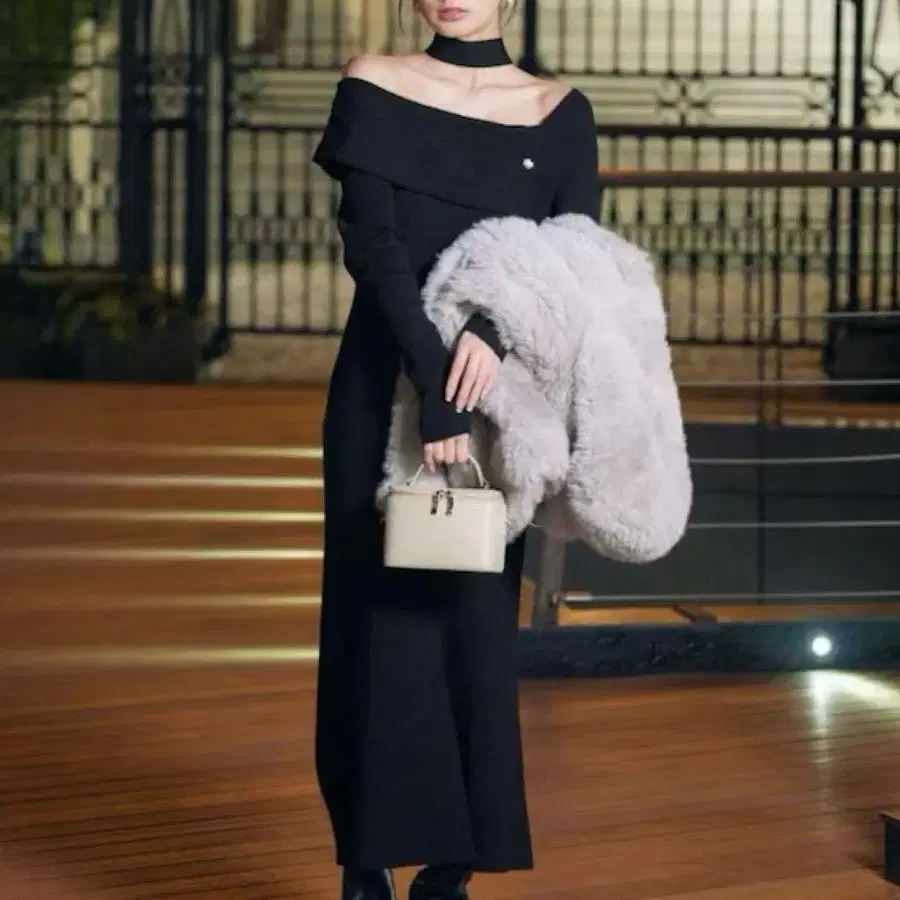 [ 새상품급/25AW ] POLO 콜라보 오프숄더 초커 니트 원피스