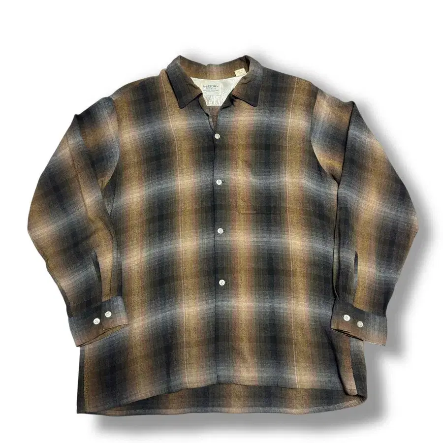 60s Arrow 애로우 레이온 셔츠 옴브레 체크 빈티지 오픈 카라 섀도우 체크