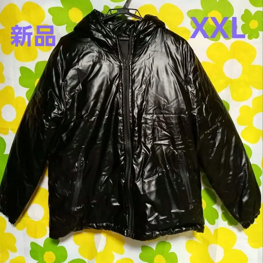 미사용 새상품 블랙 광택 다운 자켓 후드 부착 XXL
