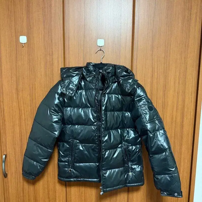 블랙 후드 부착 다운 자켓
