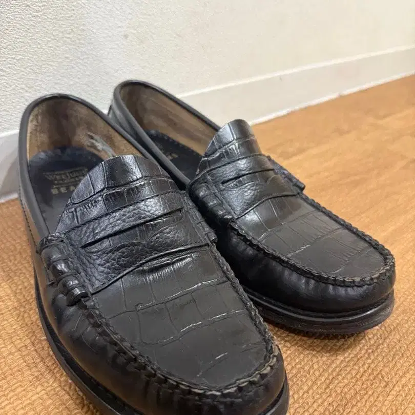 G.H.BASS x BEAMS 별주 악어 엠보싱 로퍼 블랙 26.5-27