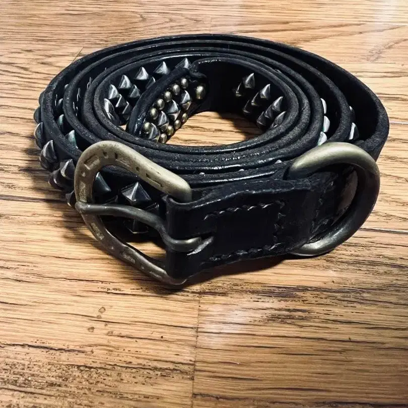 CALEE 스터드 내로우 벨트 가죽 다크 브라운 빈티지