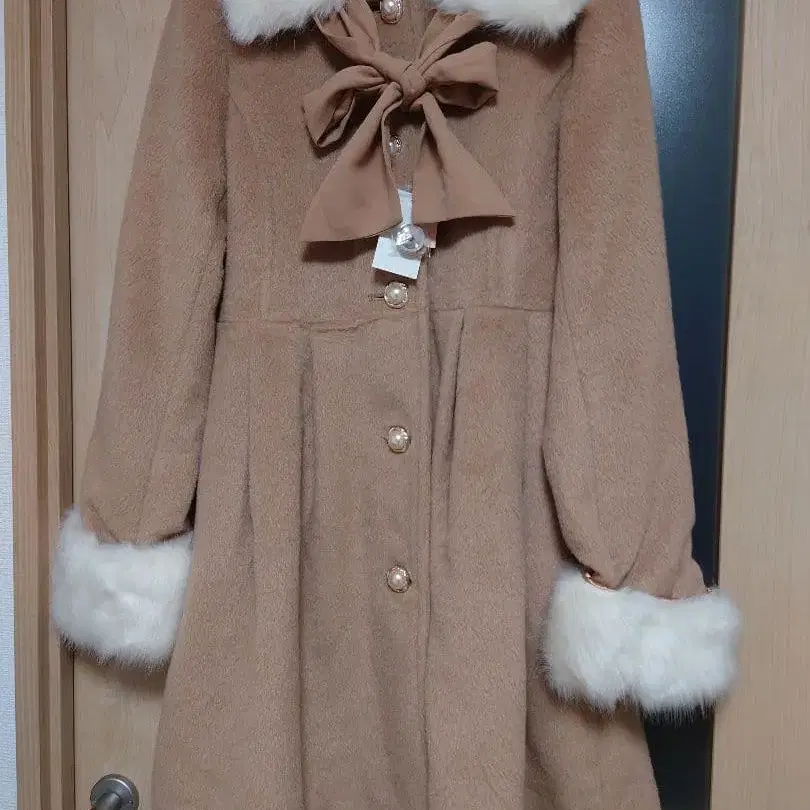 리즈리사 리본 퍼 롱 코트 새상품 마이멜로디 콜라보 카멜