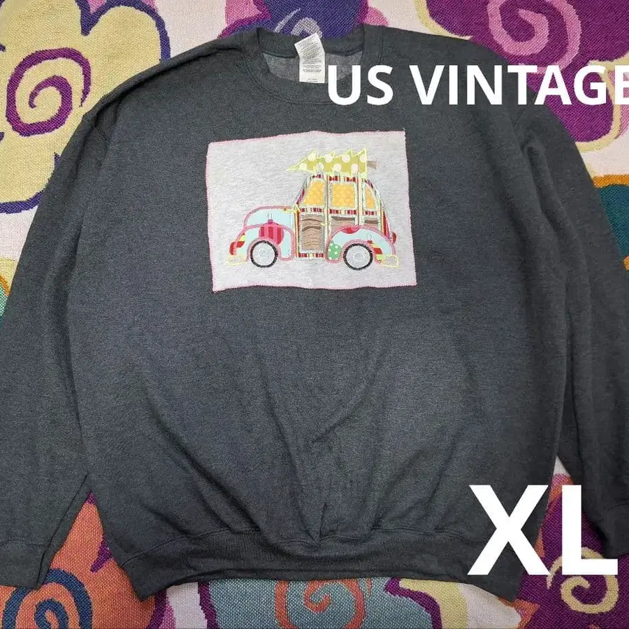 US VINTAGE 자동차 패턴 패치워크 맨투맨 오버 사이즈